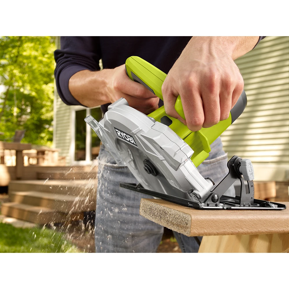 RYOBI introduces the 14 Amp 7-1/4 in. Circular Saw with Laser. Perform confident straight cross or rip cuts in wood or composite lumber and sheet goods with the 14 Amp 7-1/4 in. Circular Saw. With an adjustable bevel, ergonomic handles, and the EXACTLINE Laser Alignment System, this saw is a great choice for delivering straight, accurate cuts with precise depth control. The hardworking 14 Amp motor provides up to 5,000 RPM for powerful performance and the on-board wrench storage and spindle lock make blade changes fast and easy. Backed by the RYOBI 3-Year Manufacturer’s Warranty, the 14 Amp 7-1/4 in. Circular Saw includes a 7-1/4 in. blade, blade wrench, and operator’s manual.