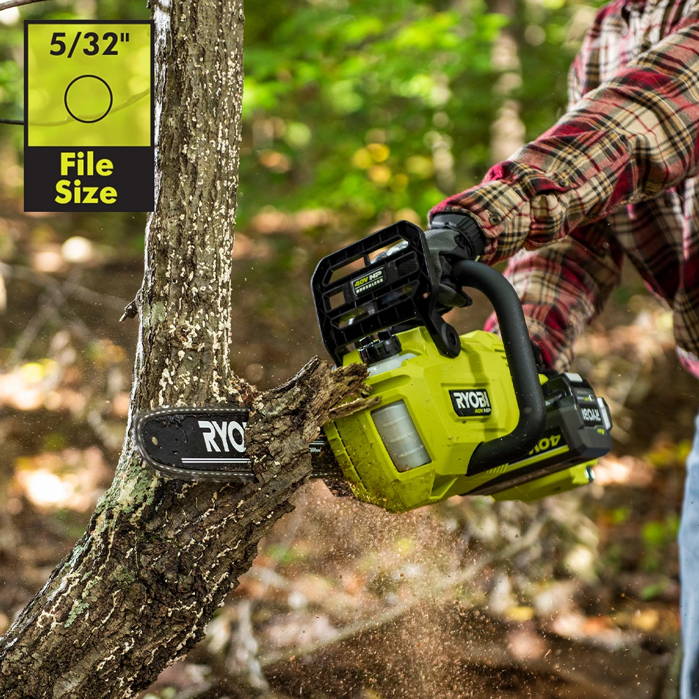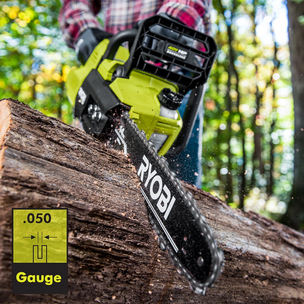 The RYOBI 14″ Replacement Chain is the best solution for replacing your damaged or dull 14″ chain. It is best for gas and cordless saws compatible with most brands. The chain has a .050″ gauge 3/8″ low profile pitch 52 drive links and 5/32″ file size.