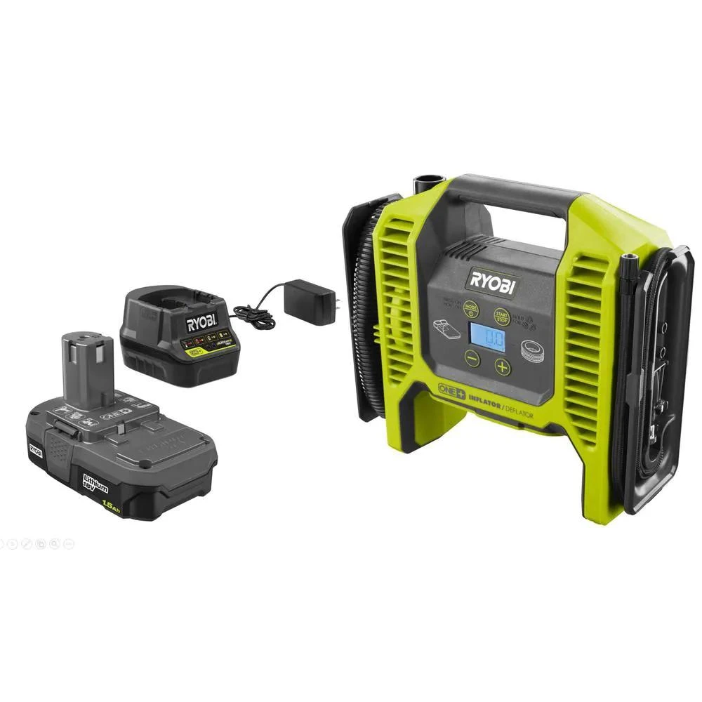 RYOBI introduces the 18V ONE+ Lithium-Ion Cordless Dual Function Inflator/Deflator with 1.5 Ah Battery and 18V Charger. This inflator is capable of completing both high pressure and high volume applications. Powered by RYOBI 18V batteries, this unit has maximum portability for any location. The included battery provides extreme weather performance to withstand frigid weather conditions and delivers fade-free power for maximum performance. The charger is compatible with all RYOBI 18V ONE+ Lithium-Ion Batteries. Best of all, it is part of the RYOBI ONE+ System of over 225 Cordless Tools that all work on the same battery platform.