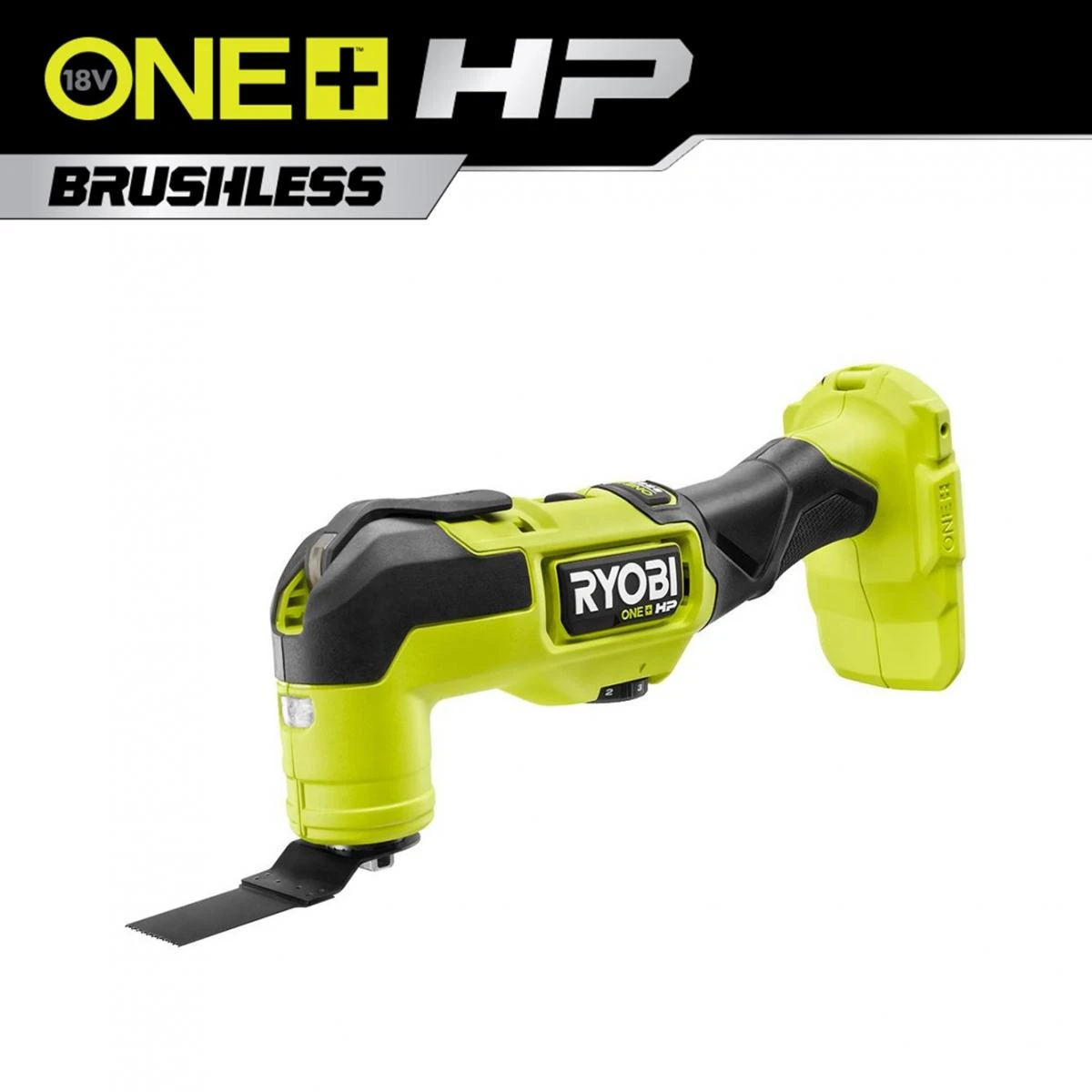 The RYOBI 18V ONE+ HP Brushless line of products is redefining power and performance. The RYOBI 18V ONE+ HP Brushless Multi-Tool (PBLMT50B) and its aggressive 3.6 degree oscillation angle provides up to 30% faster cutting speeds allowing you to work more efficiently and effectively. The adjustable speed dial which operates at up to 20,000 Oscillations per Minute (OPM) gives the ability to make cuts into drywall, metal, wood, plastic, composite, and many other materials, along with the ability to sand the finest details. The tool-free accessory release makes switching accessories quick and easy which means less downtime. A built-in LED light illuminates dark work areas for improved visibility. The slide-on power switch eliminates the need to continuously hold a trigger while working which provides less user fatigue over extended use. The 18V ONE+ HP Brushless Multi-Tool is compatible with most multi-tool accessories from other brands. Best of all, it is part of the RYOBI 18V ONE+ System of over 225 tools that all work on the same battery platform.