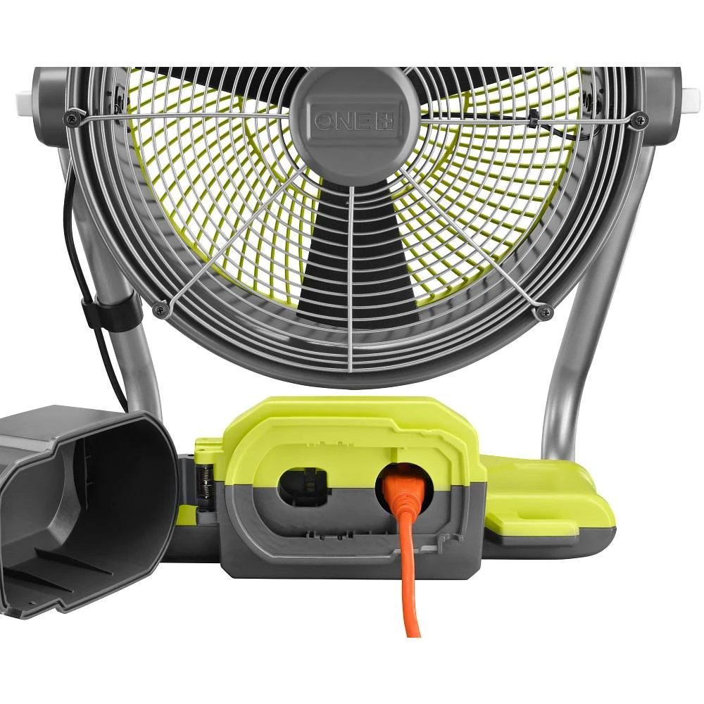 RYOBI introduces the 18V ONE+ Cordless Hybrid 12 in. Misting Fan Cannon Kit with 4.0 Ah Battery and Charger. With up to 1,400 CFM and up to 15 ft. of spray range the RYOBI 18V ONE+ 12 in. Hybrid Misting Air Cannon is the ultimate cooling solution. A part of RYOBI’s WHISPER SERIES, the RYOBI 18V ONE+ 12 in. Hybrid Misting Air Cannon is included in our quietest range of products. The RYOBI 18V ONE+ Hybrid 12 in. Misting Air Cannon provides easy set up and use by connecting to your standard garden hose for misting capability, a pivoting head, and a HI/LO switch for customizable air flow. The 18V ONE+ 12 in. Hybrid Misting Air Cannon can be used as a powerful fan when the misting feature is not being utilized for ultimate user versatility. The included 4.0 Ah Battery and 18V Charger are compatible with all RYOBI 18V ONE+ Tools. Best of all, it is part of the RYOBI ONE+ System