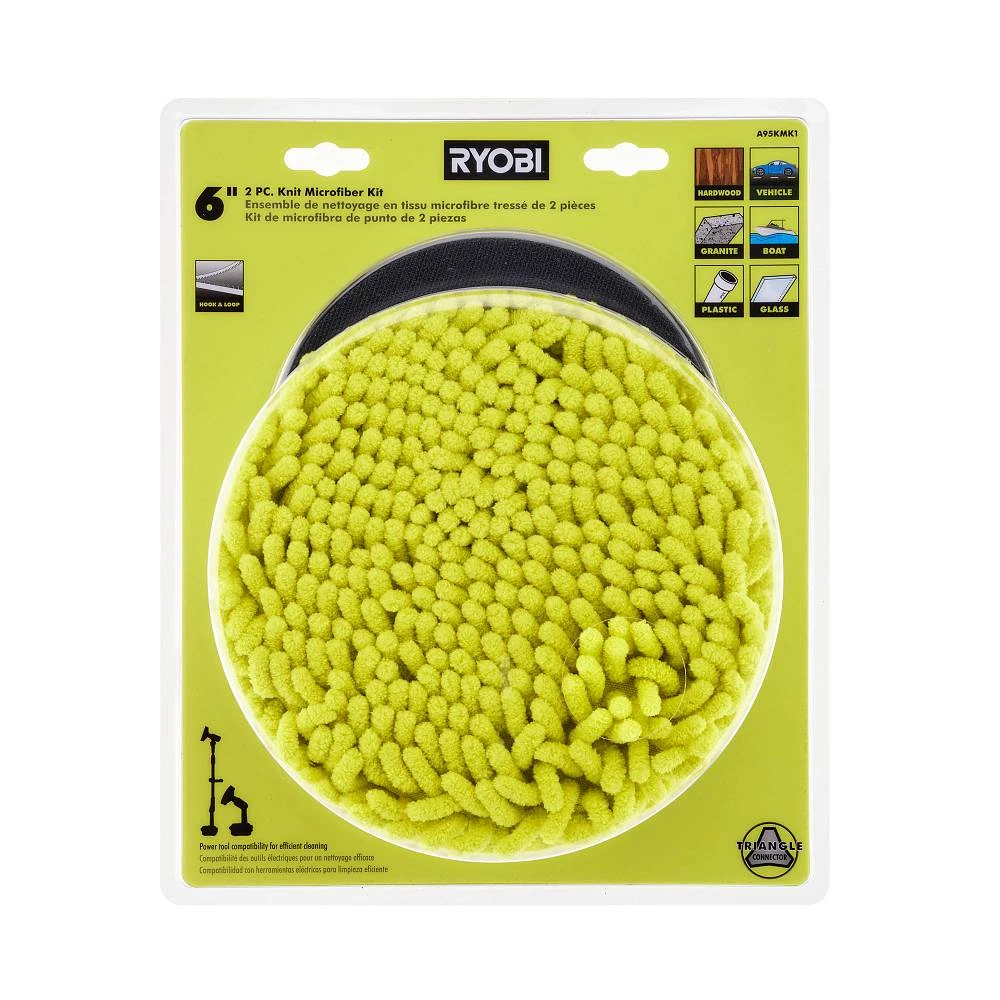 RYOBI introduces the 6 in. 2-Piece Knit Microfiber Kit to our cleaning category. With soft knit microfiber cloth, this accessory is perfect for cleaning granite, glass, boats, and other surfaces. The 6 in. Hook and Loop System provides quick change adaptability with a variety of sponge and cloth heads. This system creates an anti-slip hold so the accessory head remains attached to the scrubber. These heads have a unique fitment to the backer that prevents accidental marring. The Triangle Connector allows the Hook and Loop System to be compatible with the RYOBI 18V ONE+ Power Scrubbers. Included in this set is (1) 6 in. Knit Microfiber Head and (1) 6 in. Hook and Loop Backer.