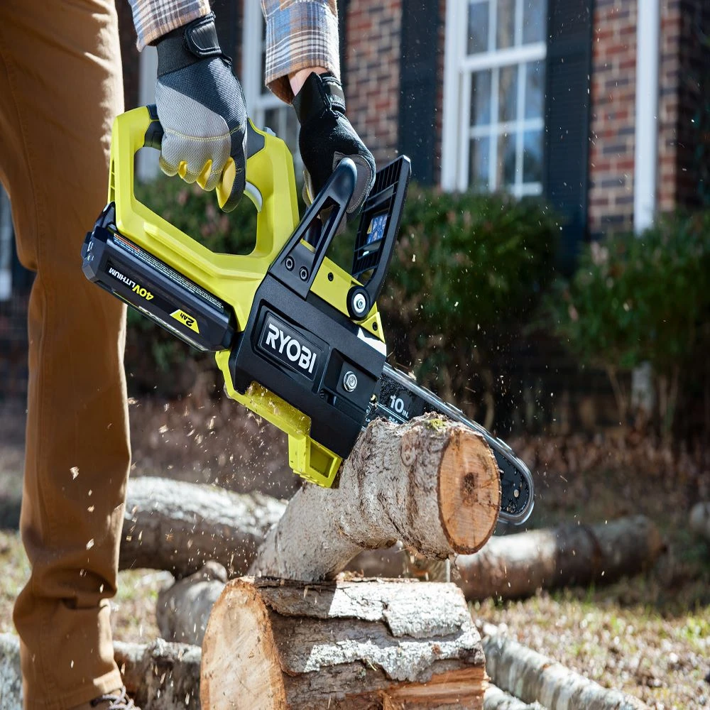 Easily cut tree limbs and prune shrubs with this Ryobi 40V 10 in. chainsaw. The cordless design is lightweight and compact for increased portability and easy storage. The 10 in. bar and chain features an automatic oiler so you can count on smooth, consistent cuts every time.