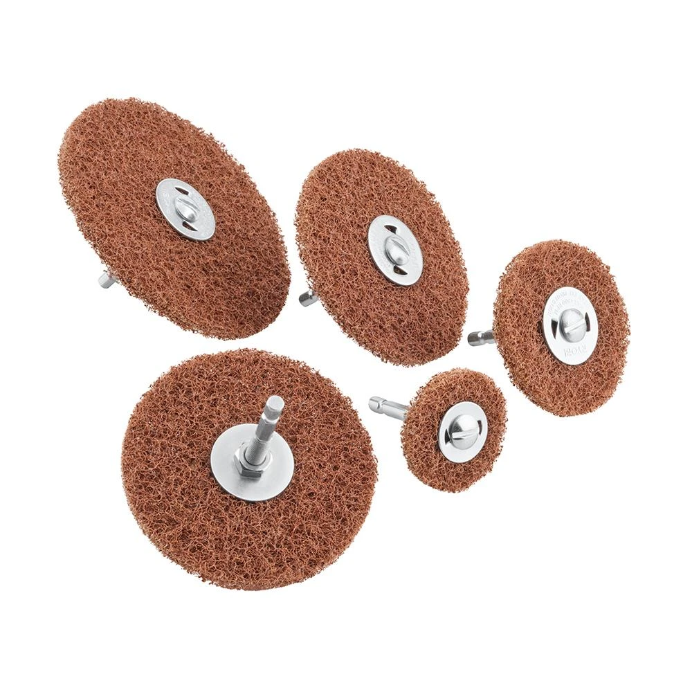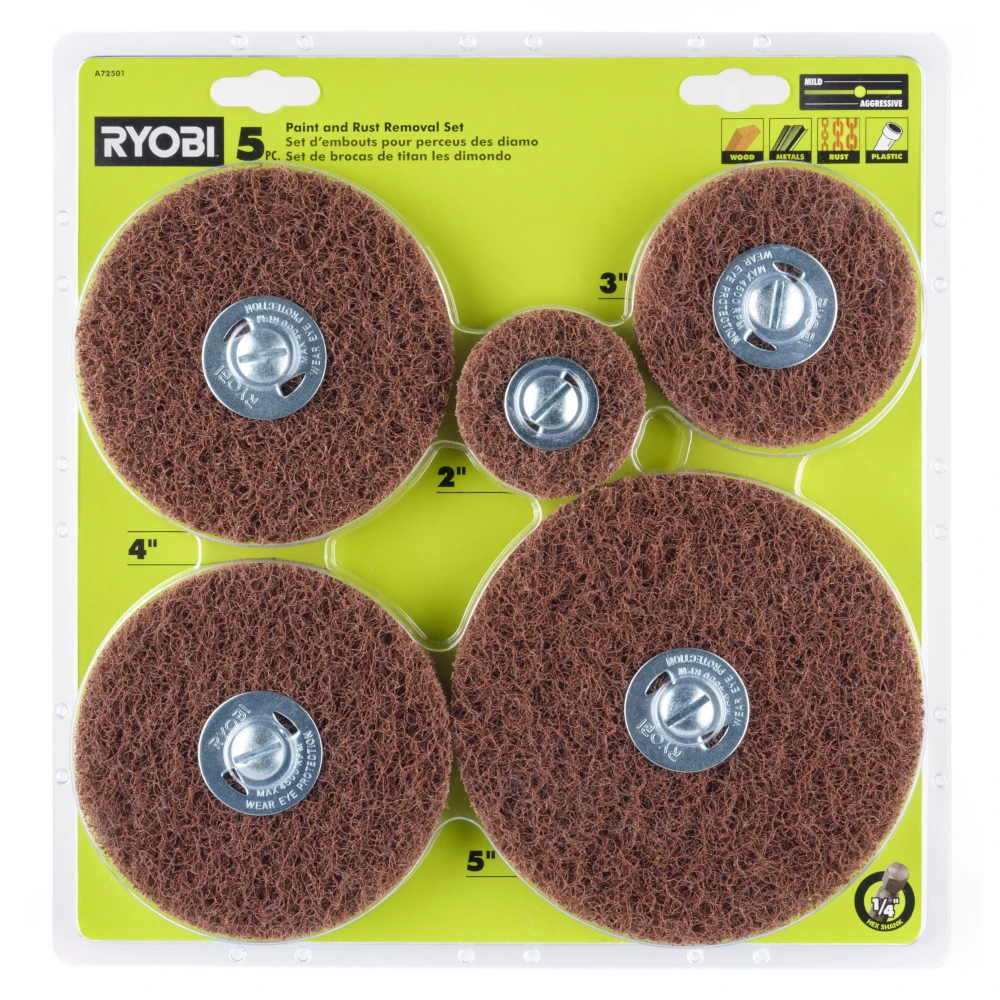 Compliment your tool collection with the 5 PC. Paint and Rust Removal Set. This set is ideal for removing paint, rust, dirt/grime from wood, metal and plastic. There are 4 different sizes ranging from 2 in.-5 in. to accommodate a variety of material preparation applications. This set is excellent for moderate to aggressive material removal, allowing you to work on a wide range of materials. These wheels all have a 1/4 in. Hex Shank making them compatible with drills and impact drivers.