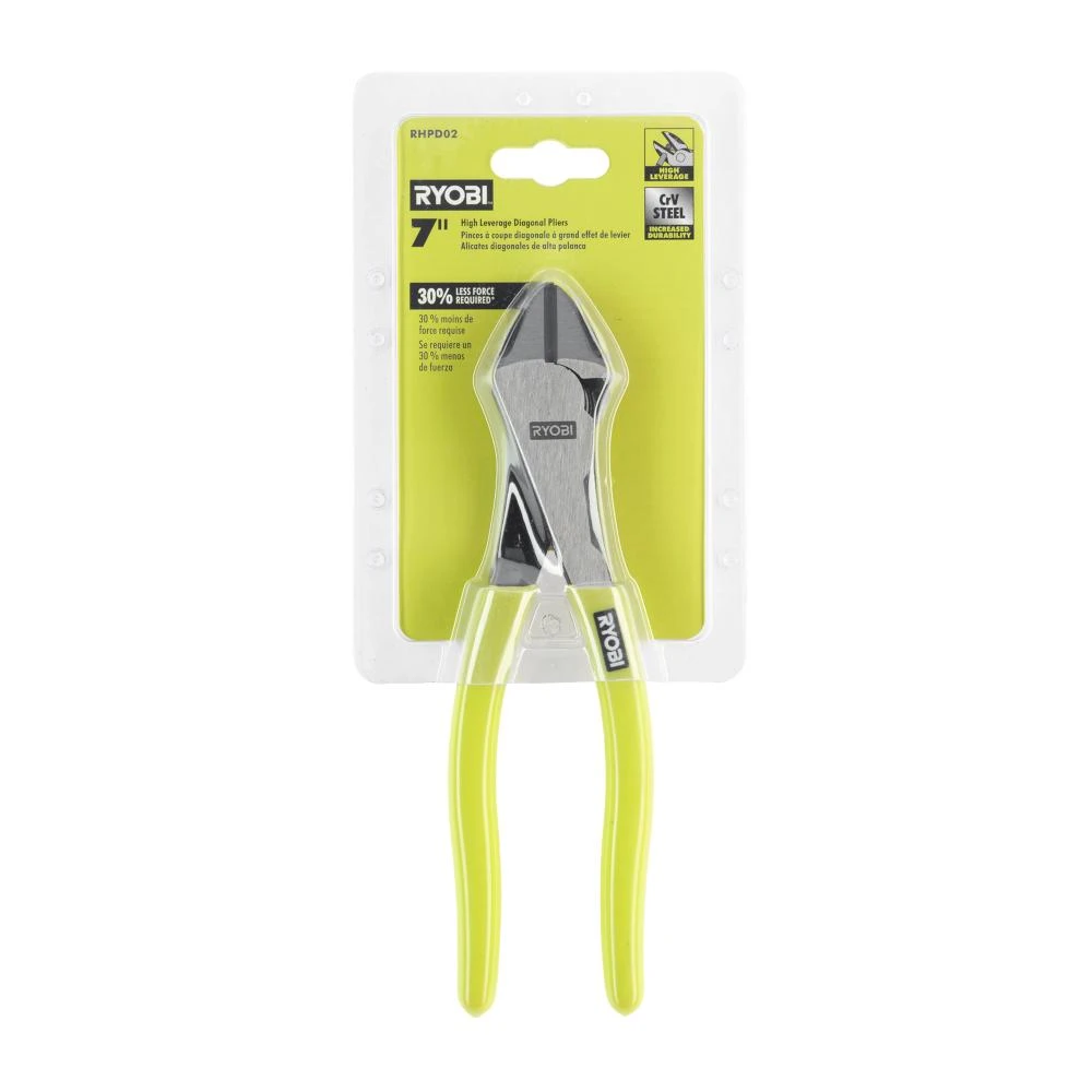 The RYOBI 7″ High Leverage Diagonal Plier is easier to use than ever with 30% less force required when cutting thanks to the high leverage design. The high visibility dipped handles allow you to easily locate these in your tool bag. Additionally, these pliers are built to last with the increased durability of CrV Steel and induction hardened cutting edges. RYOBI Hand Tools offer an extensive variety of solutions to tackle any job, so you are never caught empty handed.